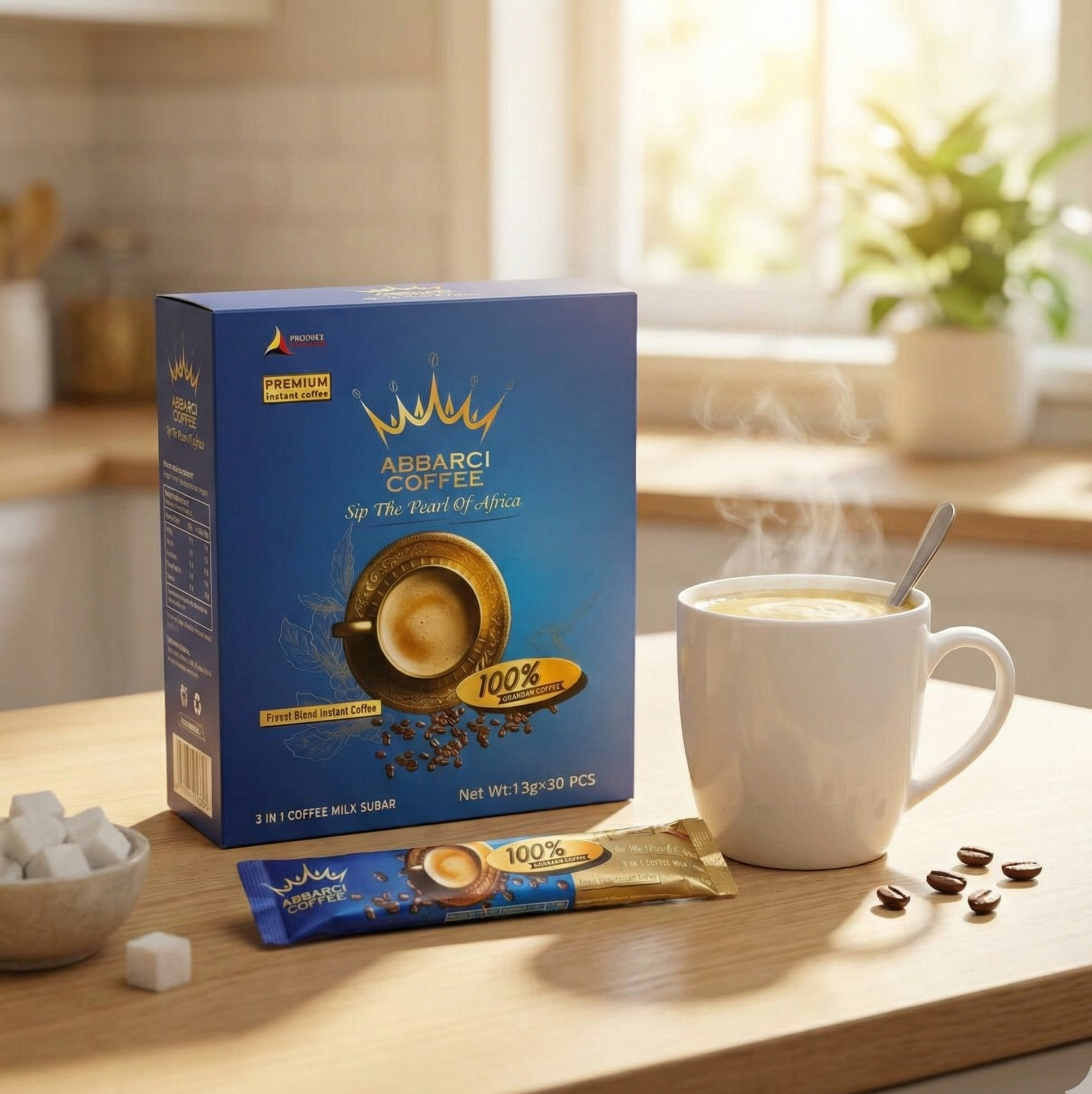 Wake up and embrace the day with Abbarci Coffee, a brand that celebrates the bold flavors of Africa in every cup. Our premium coffee collection is carefully crafted with 100% Arabica beans, offering a rich, aromatic experience that speaks to the true essence of African coffee culture. Made for coffee lovers who value quality and sustainability, each product is designed to keep you energized and inspired. Discover our wide range of instant coffee, sachets, and freeze-dried options, all made with the finest ingredients. Stay energized, stay bold.